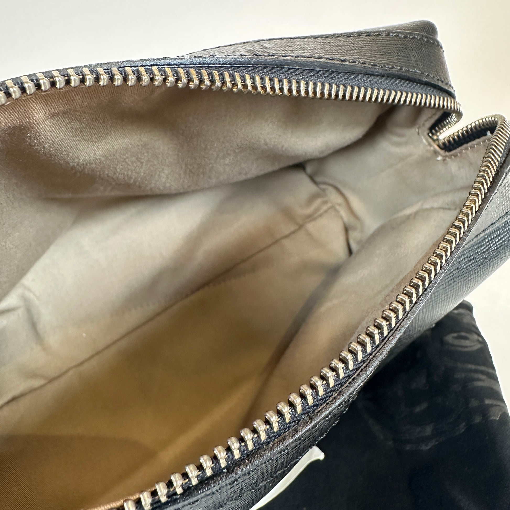 La cosmetiquera negra de Versace es la elección perfecta para mantener tus cosméticos organizados y a salvo. Con su diseño elegante y de alta calidad, esta cosmetiquera es duradera y resistente al desgaste. ¡Mantén tus productos de belleza siempre a mano con esta funcional cosmetiquera!