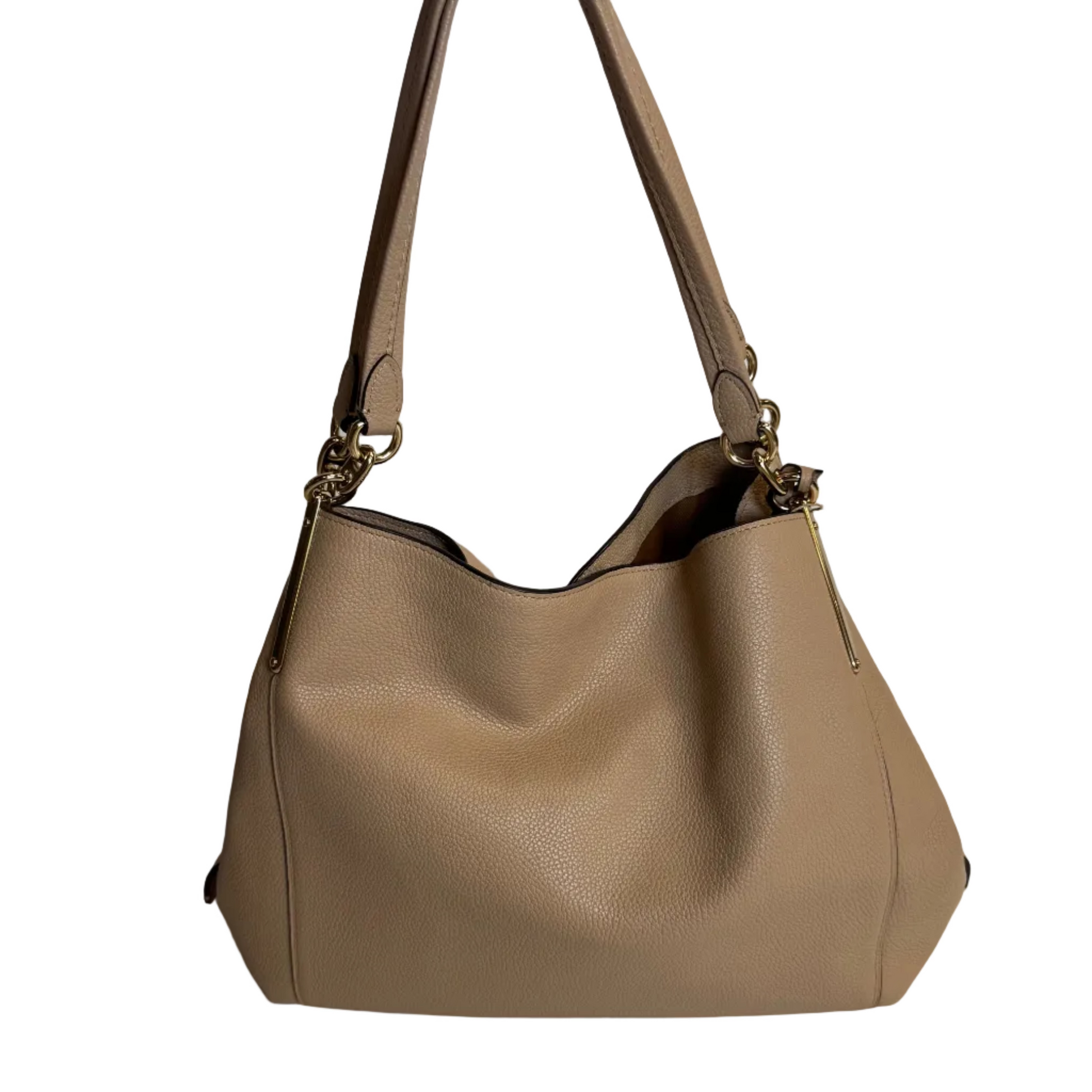 El bolso Dalton 31 en camel es un hobo de hombro que combina elegancia clásica con funcionalidad. Confeccionado con materiales de calidad, presenta el distintivo llavero colgante con la letra C de Coach y herrajes dorados que añaden un toque de sofisticación. Su tamaño versátil lo hace ideal para el día a día, ofreciendo espacio suficiente sin sacrificar el estilo. El asa permite llevarlo cómodamente al hombro, mientras que el tono camel neutral se adapta a cualquier guardarropa. Un accesorio imprescindible para quien busca calidad y diseño minimalista.