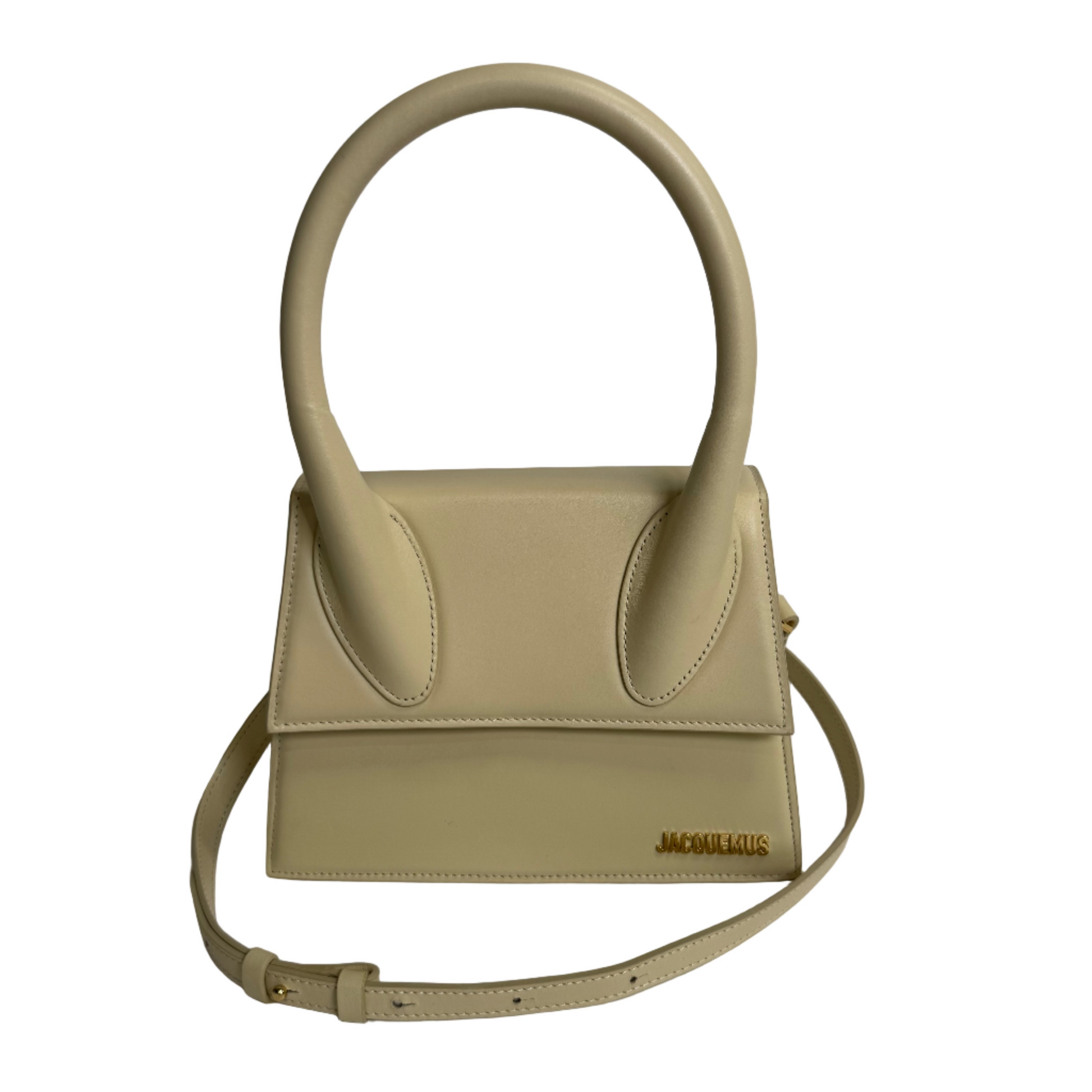El gran chiquito Beige de Jacquemus es un bolso que combina elegancia y originalidad en un formato compacto. Su diseño minimalista y color neutro facilita la combinación con cualquier outfit, mientras que su tamaño pequeño aporta un toque distintivo y sofisticado. Perfecto para llevar lo esencial con estilo, este accesorio refleja la innovación y el lujo característicos de Jacquemus.