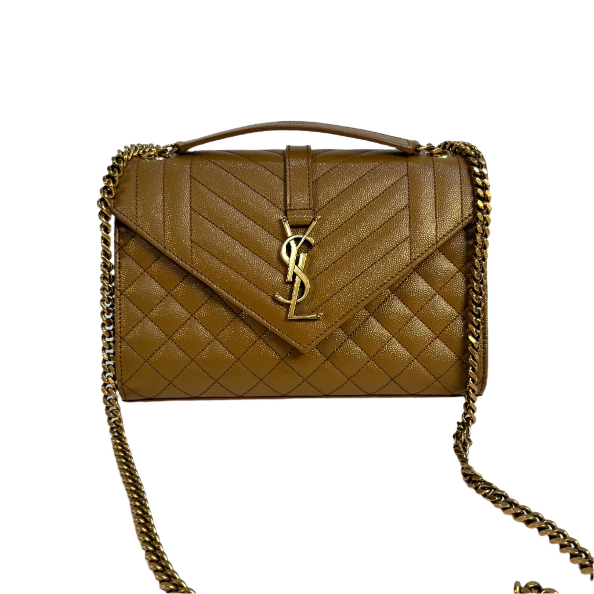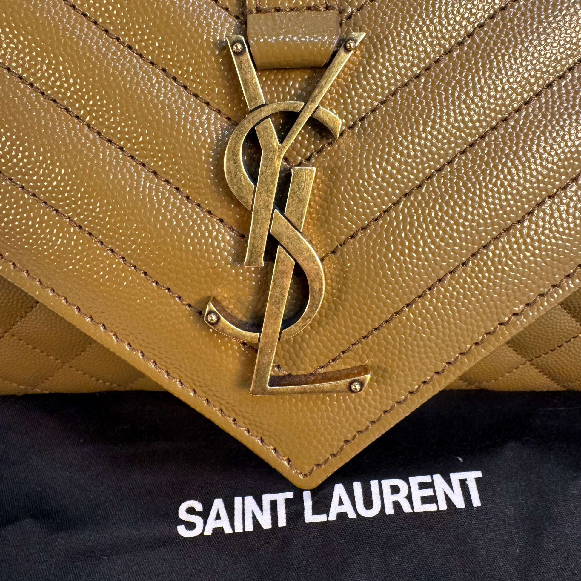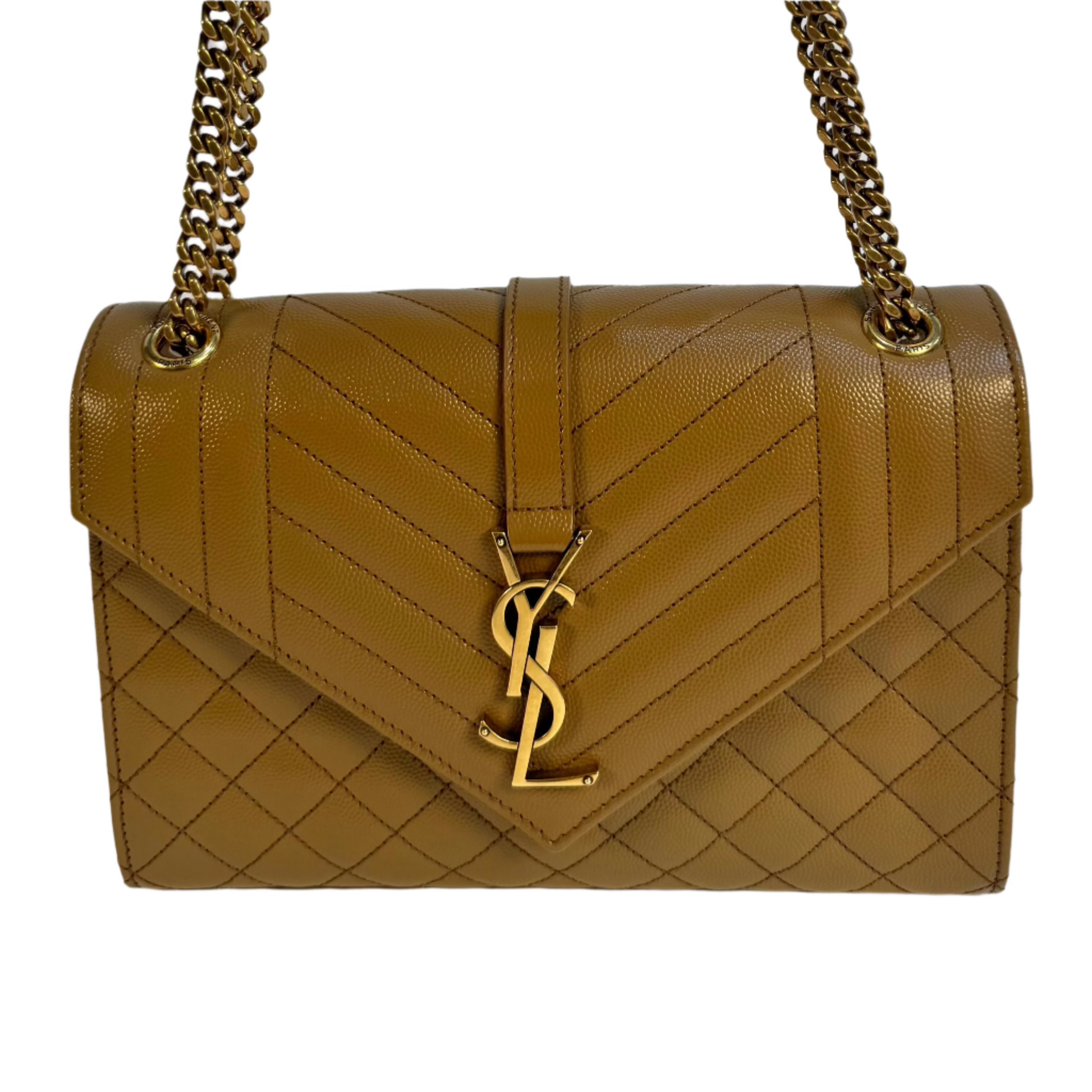 El bolso YSL medium en piel grain de poudre color oliva combina elegancia y versatilidad. Su diseño permite llevarlo cómodamente cruzado al cuerpo o al hombro, adaptándose a diferentes estilos y ocasiones. Perfecto para quienes buscan un accesorio sofisticado con un toque moderno y funcional.