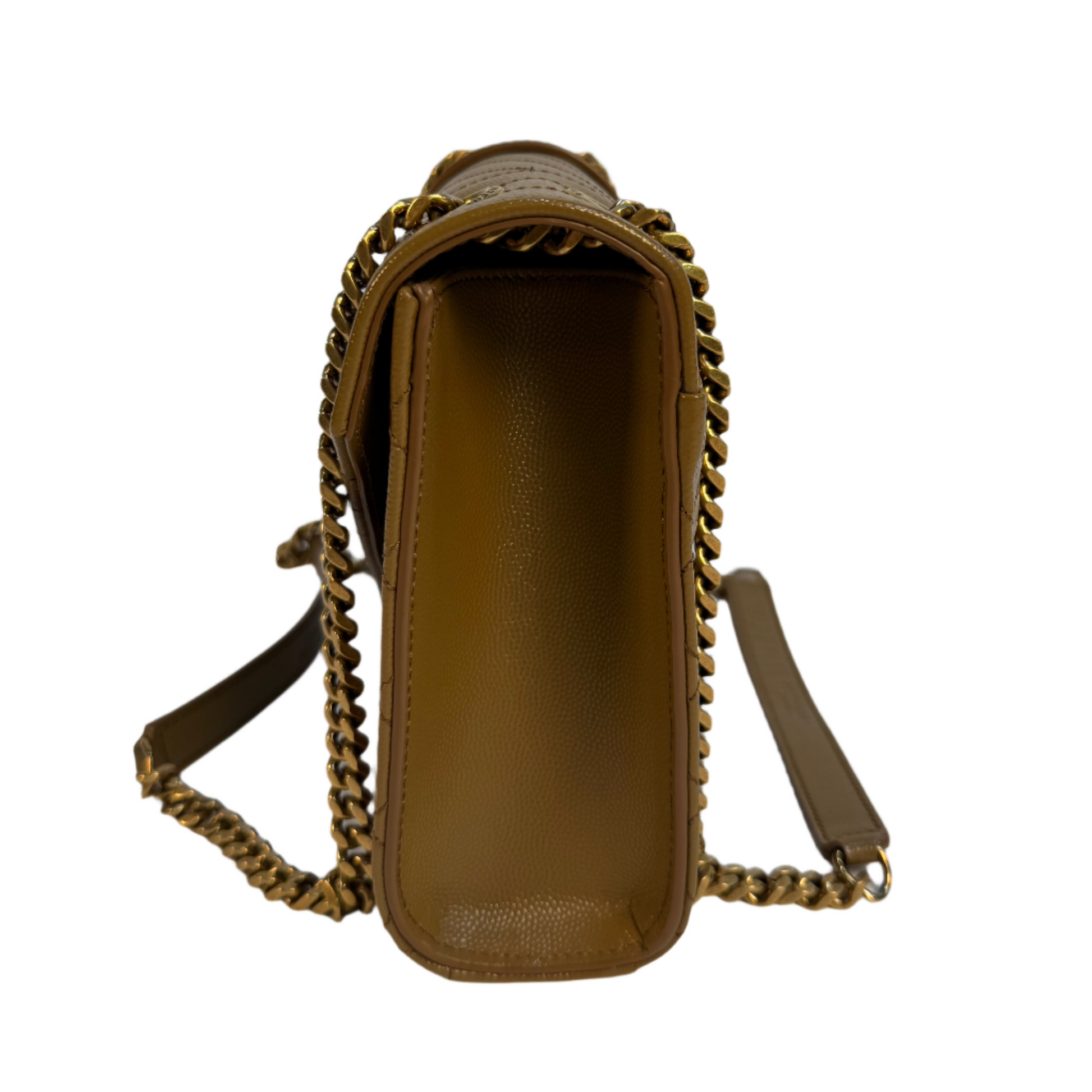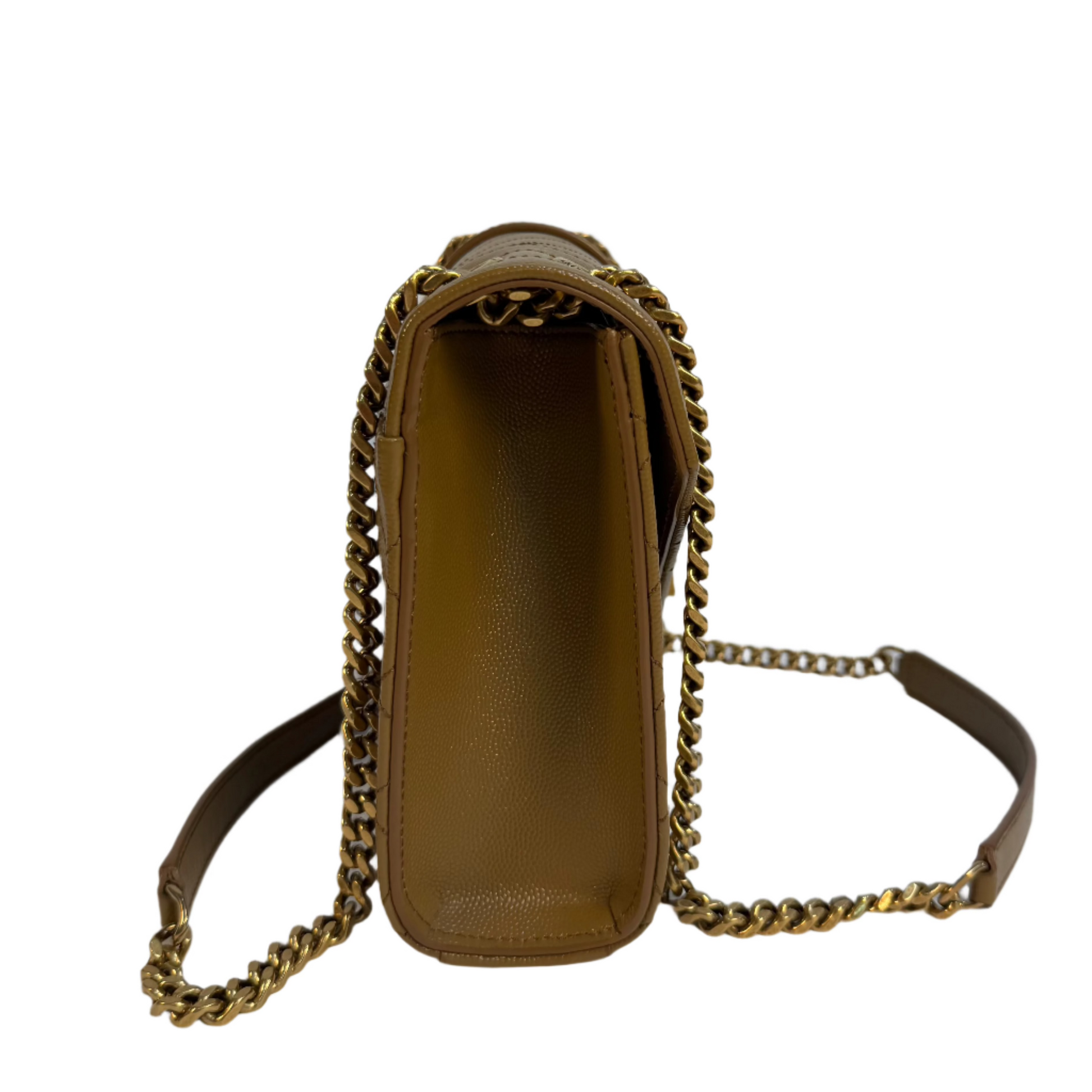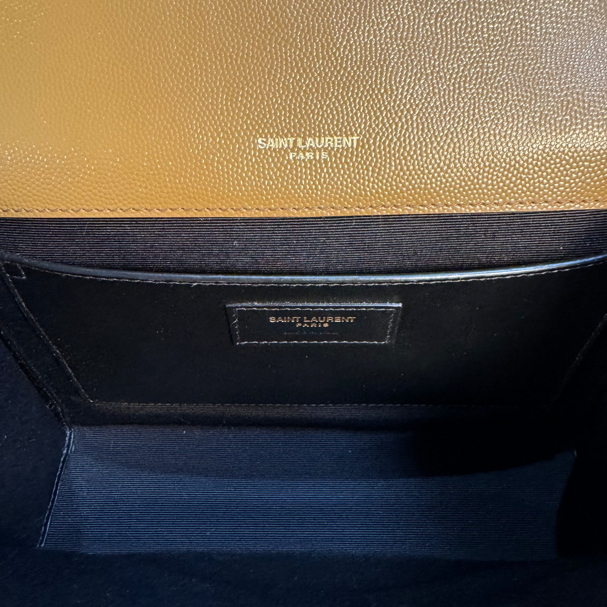 El bolso YSL medium en piel grain de poudre color oliva combina elegancia y versatilidad. Su diseño permite llevarlo cómodamente cruzado al cuerpo o al hombro, adaptándose a diferentes estilos y ocasiones. Perfecto para quienes buscan un accesorio sofisticado con un toque moderno y funcional.