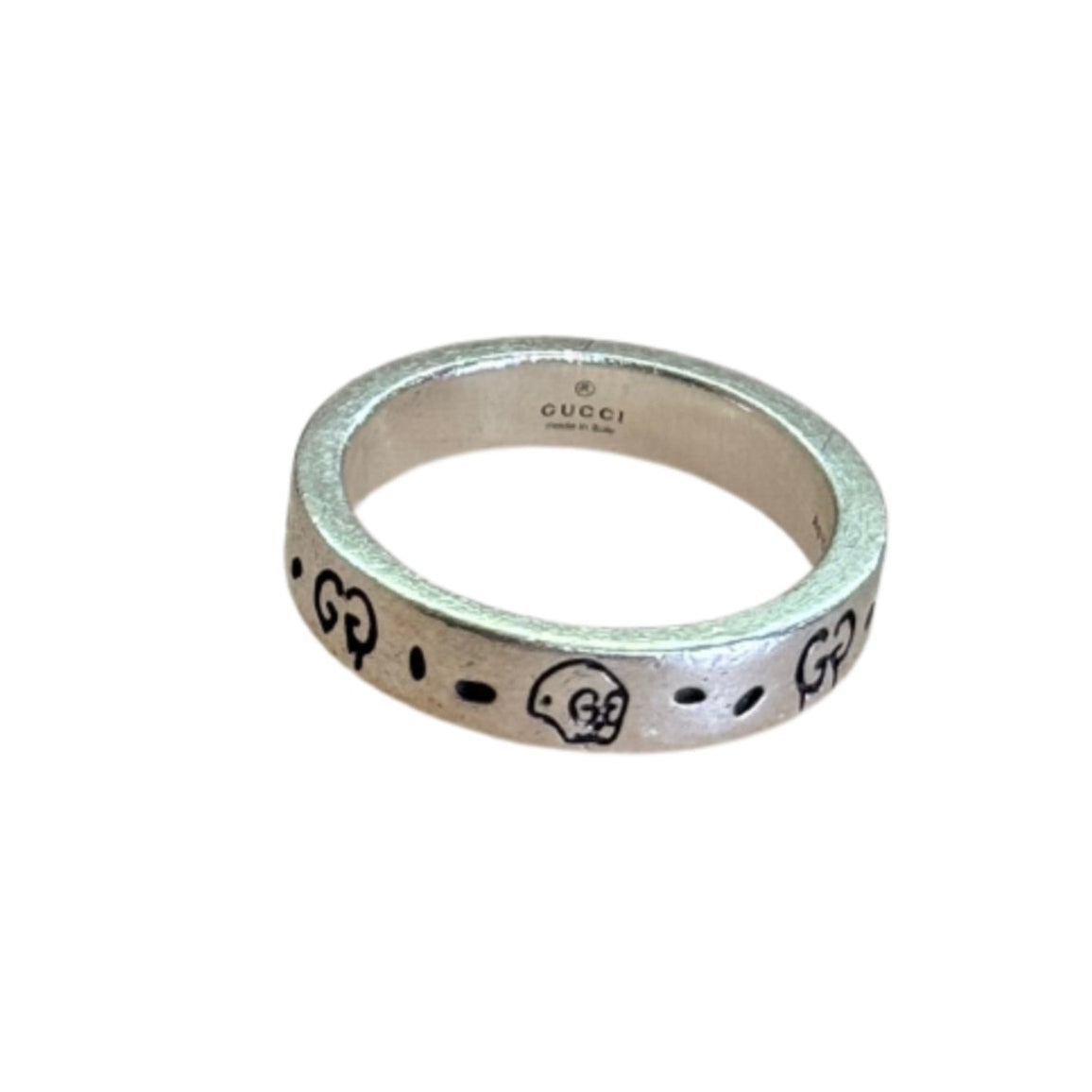 Este anillo Gucci Ghost de plata esterlina, talla 6 3/4, destaca por su diseño emblemático y su elaboración experta. Fabricado con plata esterlina de alta calidad, garantiza durabilidad y un acabado refinado. El motivo distintivo Ghost aporta un toque artístico y audaz, convirtiéndolo en un accesorio sofisticado para coleccionistas y amantes de la moda de lujo con carácter. Ideal para quienes valoran la exclusividad y el estilo contemporáneo.