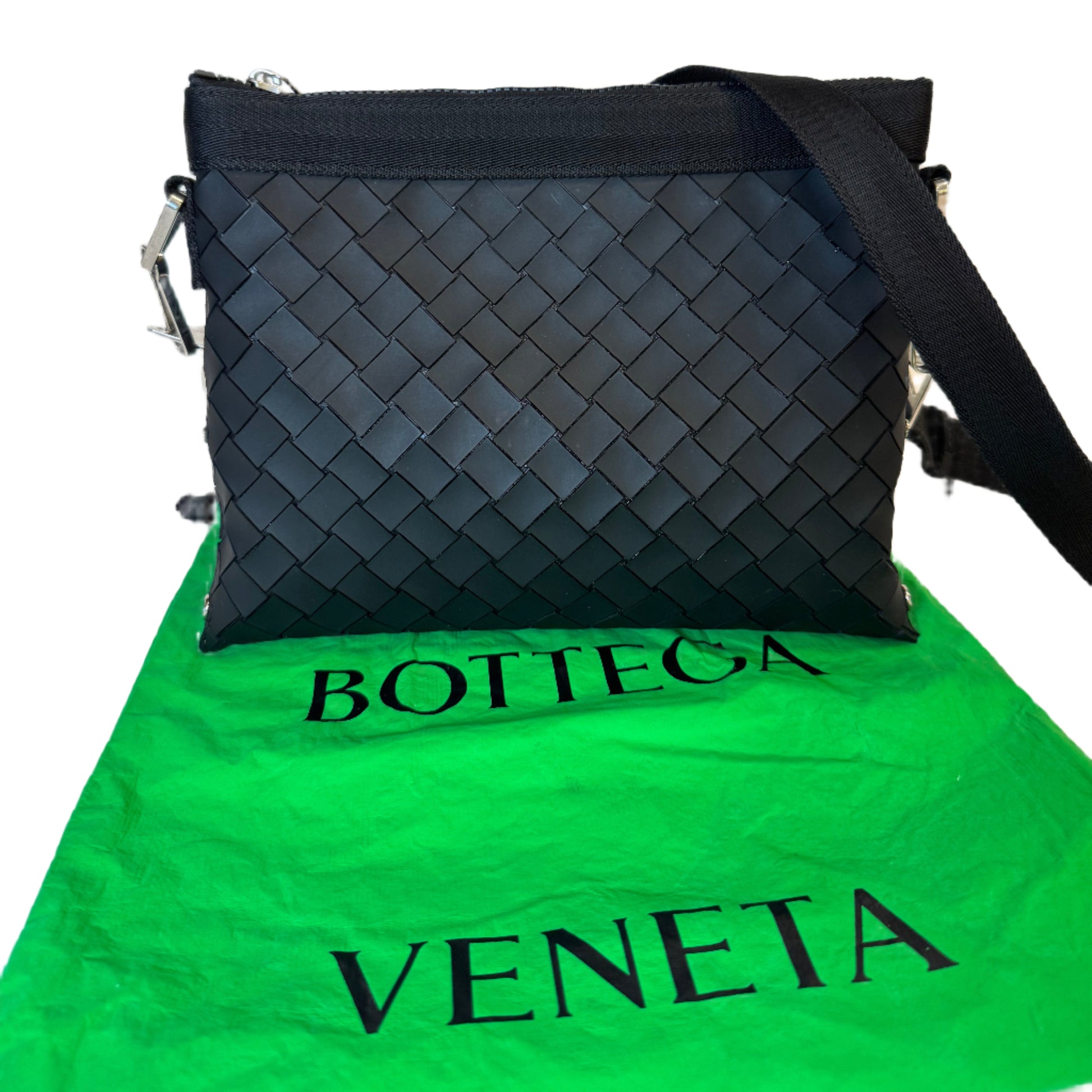 La bolsa cruzada Intreccio Rubber en negro para hombre de Bottega Veneta combina la icónica técnica intreccio con un material de caucho resistente y moderno. Su diseño elegante y funcional ofrece durabilidad y estilo, ideal para el uso diario y ocasiones casuales. Perfecta para quienes buscan un accesorio sofisticado que resista el ritmo urbano sin perder la esencia del lujo.