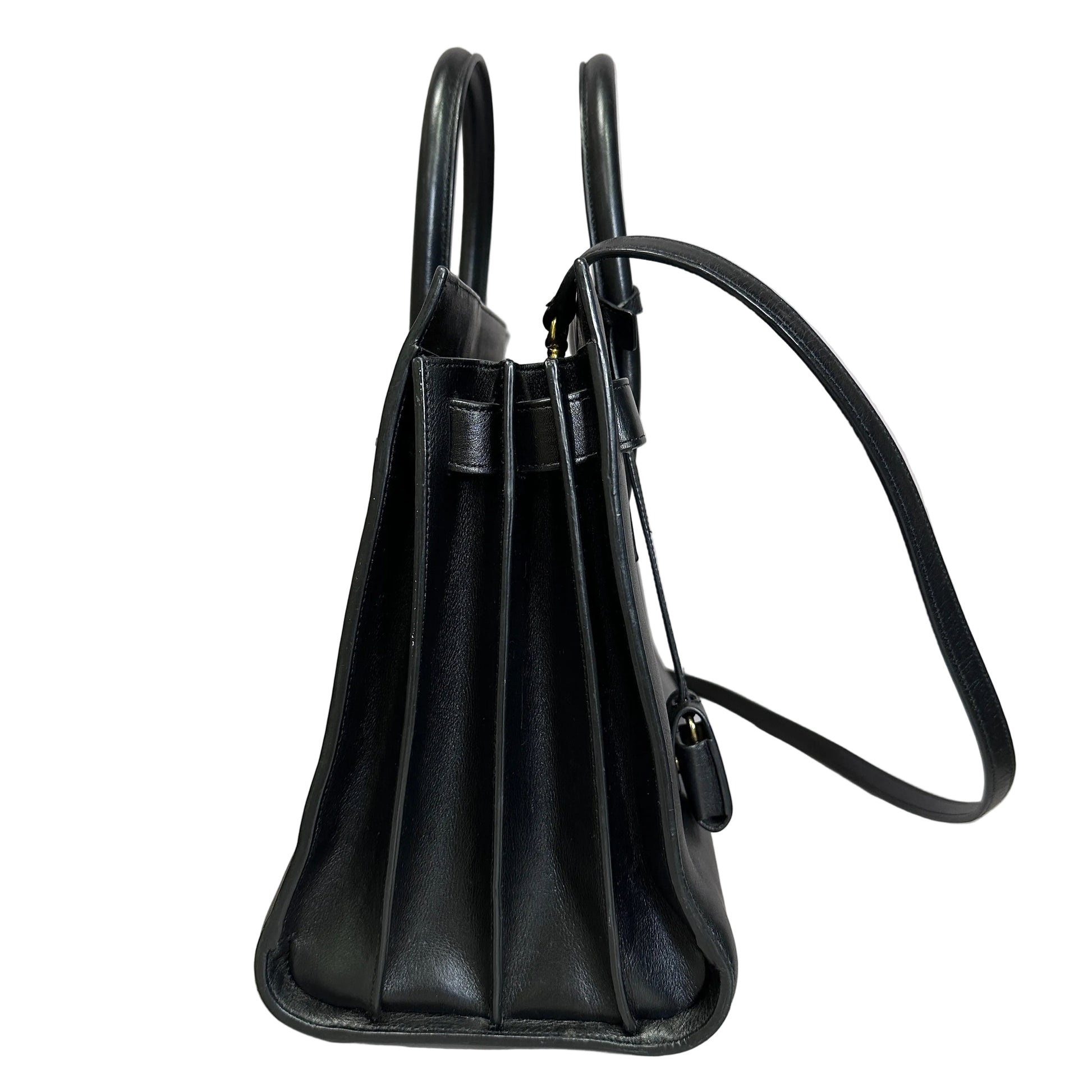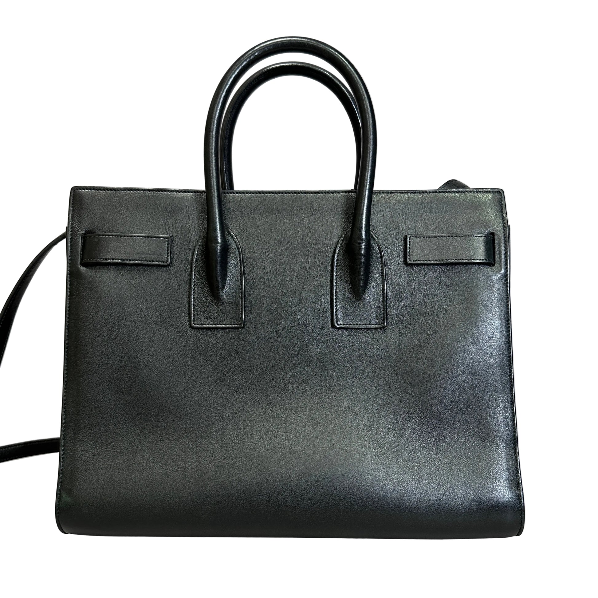 El icónico Sac de Jour de Saint Laurent en piel negra, un bolso de lujo que combina elegancia atemporal con versatilidad práctica. Diseñado con líneas limpias y proporciones perfectas, este bolso estructurado es ideal para transiciones sin esfuerzo de día a noche.