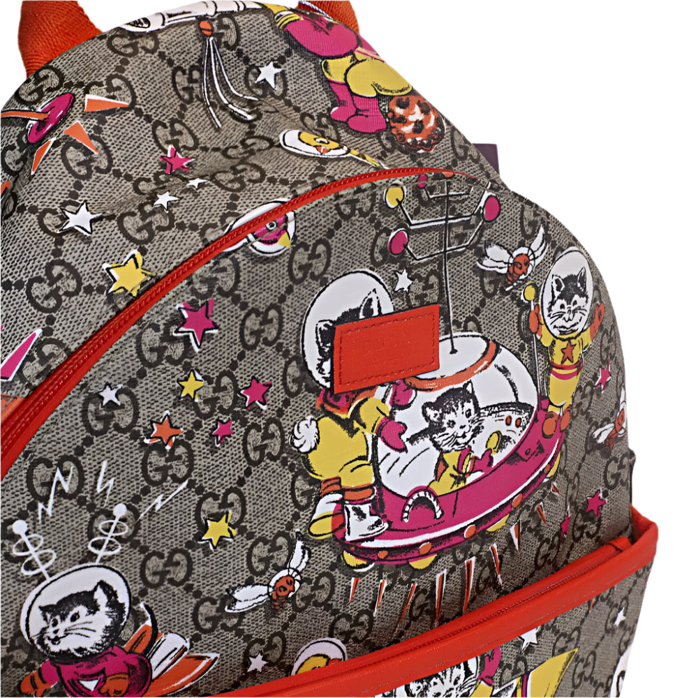 ¡Lleva tus pertenencias con estilo con nuestra mochila de lona Gucci con divertidos gatos espaciales! Hecha con materiales de alta calidad, esta mochila resistente y duradera es perfecta para el uso diario y te hará destacar en cualquier ocasión. ¡Haz una declaración de moda y cómprala ahora!
