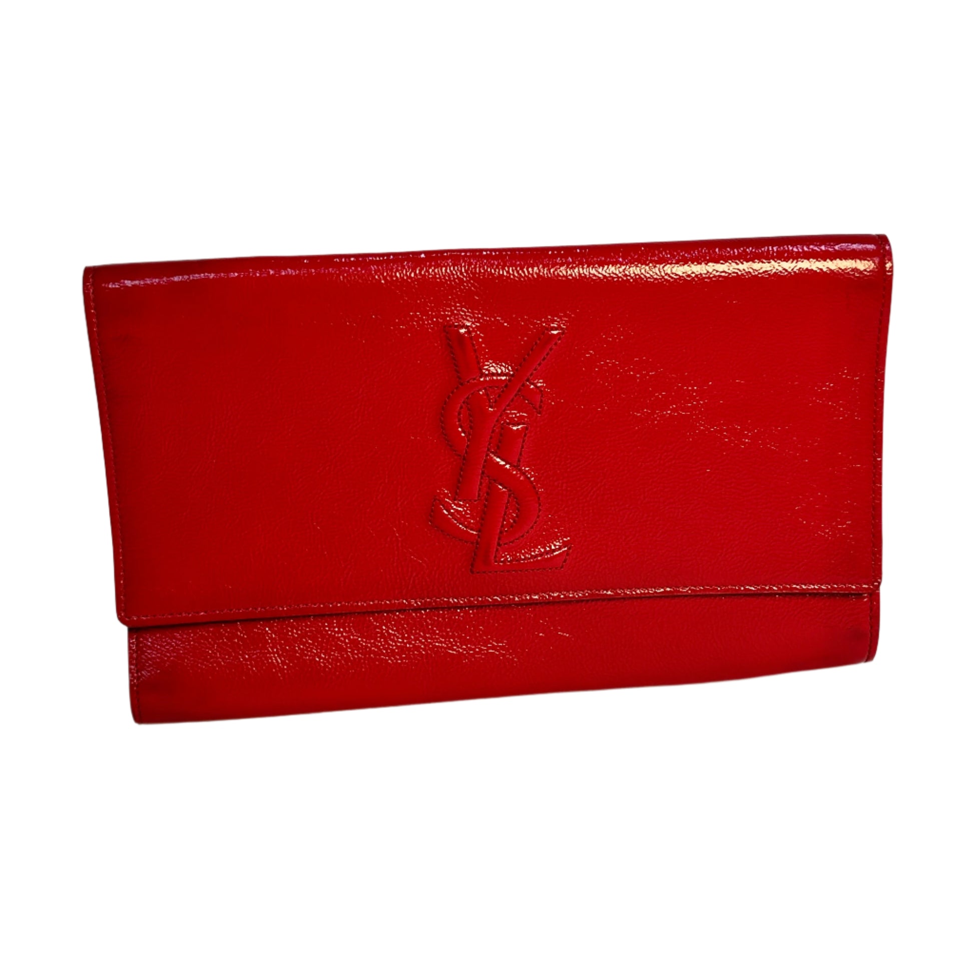 El clutch Saint Laurent Belle de Jour en rojo es un accesorio emblemático que combina diseño sofisticado y funcionalidad. Elaborado en cuero, presenta un acabado impecable y una textura suave al tacto. Su tamaño compacto es perfecto para llevar lo esencial con estilo, mientras que el vibrante color rojo añade un toque de elegancia y distinción. Ideal para eventos formales o salidas nocturnas.